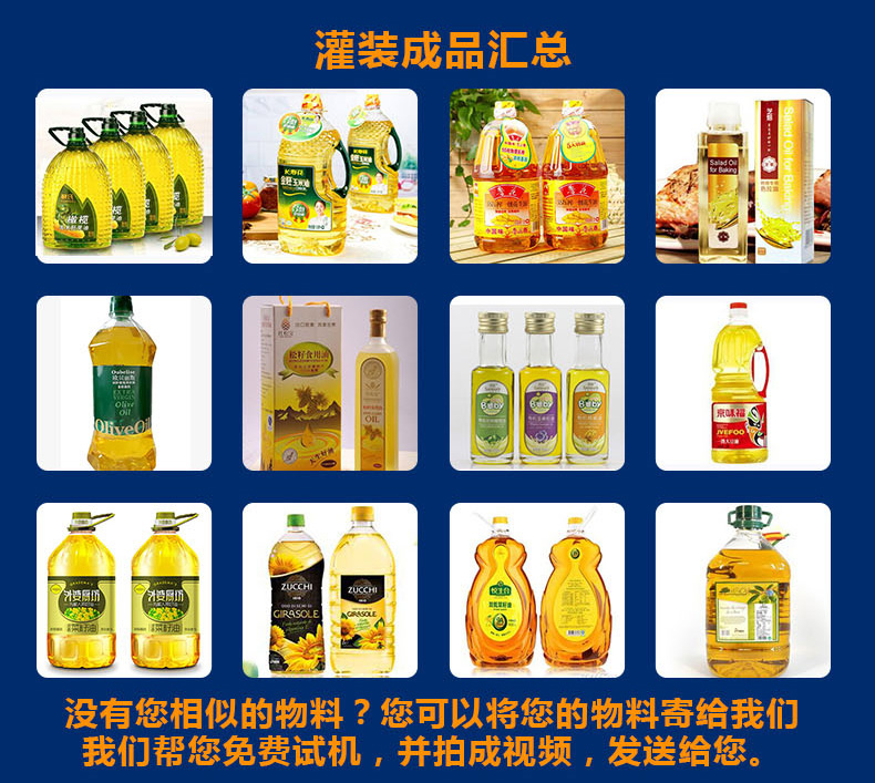 該機還可以與壓蓋機、油瓶貼標機組成食用油灌裝旋蓋貼標生產線: