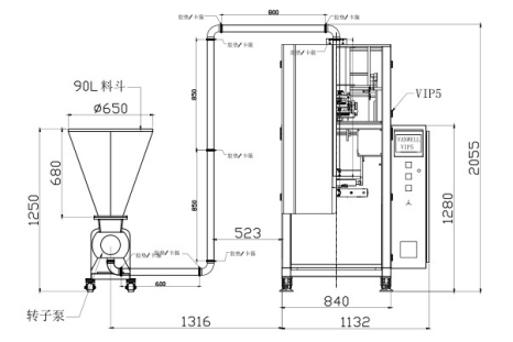開機溫度達到恒溫→設置參數→物料倒入料斗或用管引入(機器自動從料斗吸入物料)→按設定重量自動定量下料→自動包裝機自動制袋成型 (可選配沖孔、插角、排氣等附件裝置)→填充→封合→打印日期→包裝機完成自動封切→-成品包裝經成品輸送機輸送;