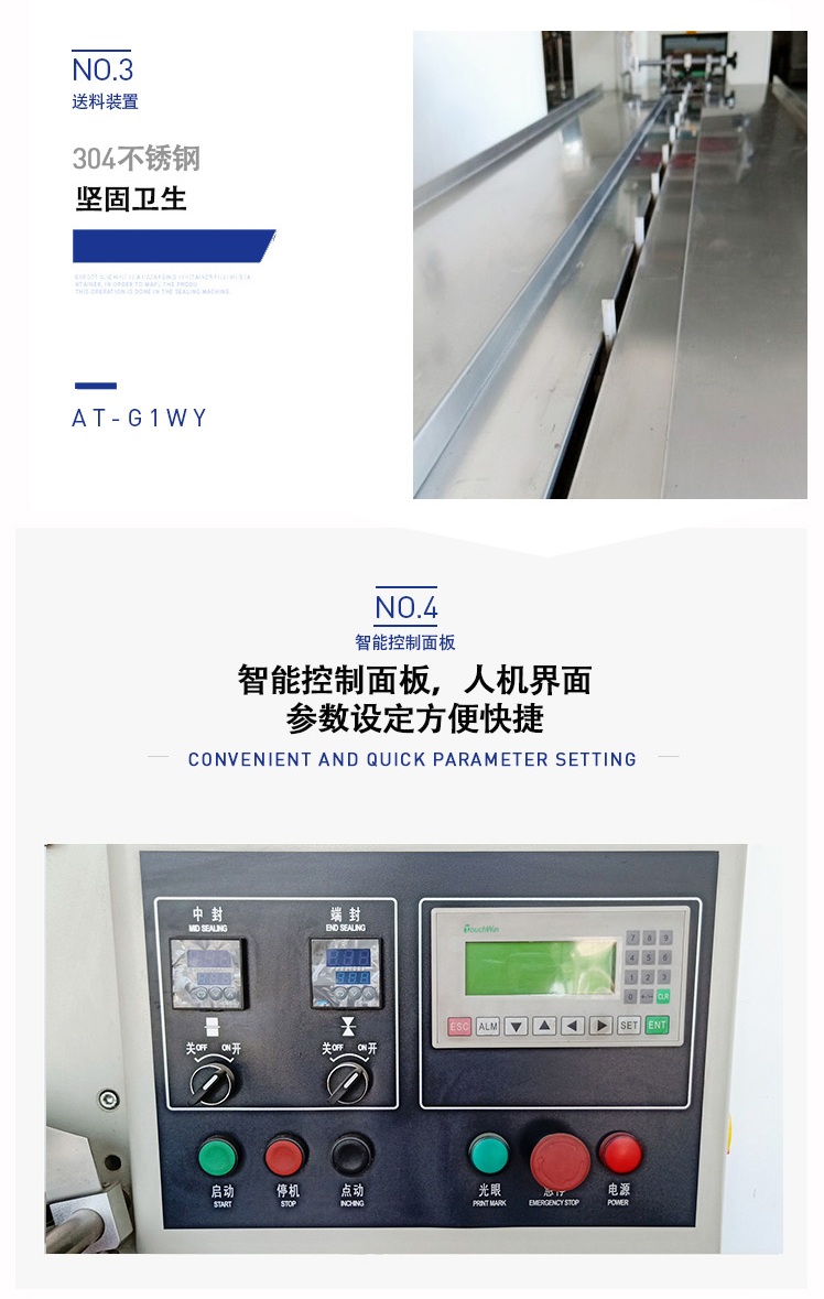 C、先進的微電腦包裝控制器,優良的人機對話模式,使速度、袋長、切點位置檢測等都可在界面上直接顯示。