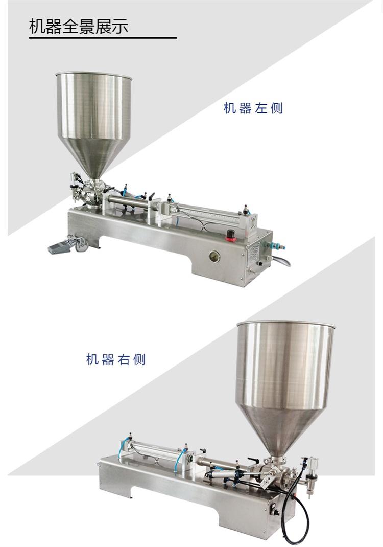 氣動(dòng)膏體灌裝機(jī)主要適用于化工、食品、日化、藥品、農(nóng)藥、潤(rùn)滑油等行業(yè)的液體膏體等物質(zhì)的定量灌裝,該灌裝機(jī)缸體、機(jī)殼、料斗均由不銹鋼材質(zhì)制成,活塞有四氟乙烯材料制成,氣動(dòng)部分均采用氣動(dòng)元件,符合GMP[要求,氣動(dòng)膏體灌裝機(jī)的灌裝量和灌裝速度可任意調(diào)節(jié),擁有腳踏開關(guān)和自動(dòng)灌裝功能,精度高,結(jié)構(gòu)簡(jiǎn)潔,操作便利。